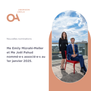 OBERSON ABELS SA is pleased to announce the appointment of Emily Mizrahi-Meller (Tax Group) and Joël Pahud (Litigation Group) as partners, effective January 1, 2025.