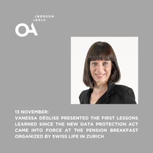 Mercredi 13 novembre, Vanessa Déglise a présenté les premiers enseignements tirés depuis l’entrée en vigueur de la nouvelle loi sur la protection des données et la réglementation applicable aux fonds de pension lors d’un événement organisé par Swiss Life à Zurich. Plus d’informations : Veranstaltungen rund um Vorsorge & Pensionskassen | Swiss Life